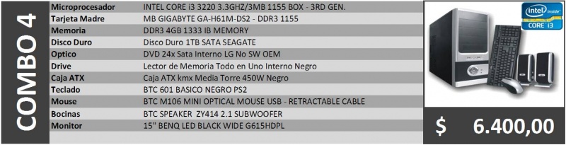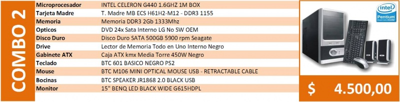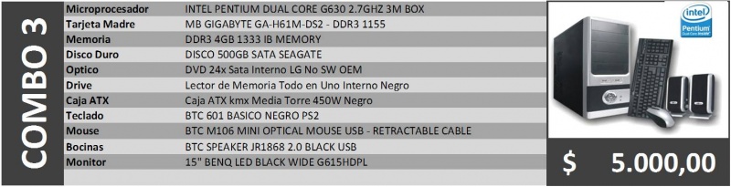 Aprovecha las promociones en maquinas armadas INTEL de esta semana: Computadora Basica o Media center ![]() Computadora Basica ![]() Computadora para Estudiantes ![]() Computadora PRO ![]() Computadora GAMER ![]() |